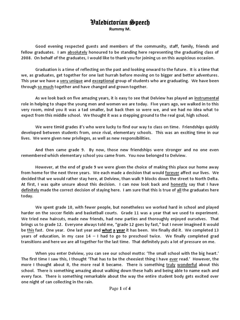 Weve included some sample text for each section of the speech to demonstrate what your valedictory might contain. That is a little less than 1 page of double-spaced16-point font which youll want because it is easier to read. How to write a graduation speech.